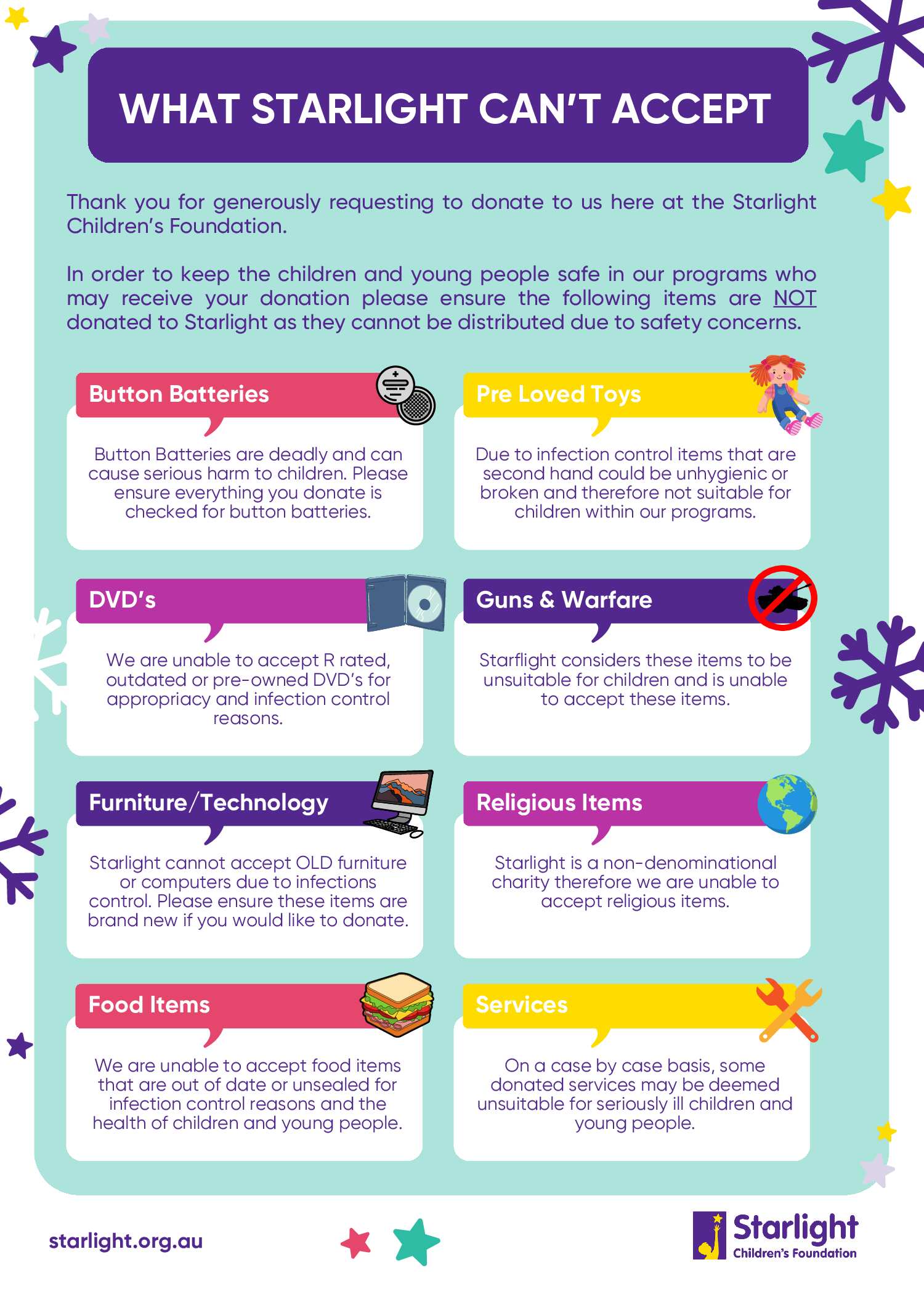 We’re proudly collecting donations on behalf of the Starlight Children’s Foundation until 8 December.